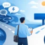 Infographic showing benefits of AI-generated content including speed, cost efficiency, and scalability